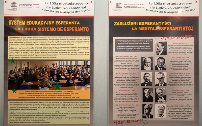 Plansze, w Esperanto i po polsku, obrazujące życie i osiągnięcia Ludwika Zamenhofa oraz wiele ciekawych informacji o ruchu esperanckim w kraju i za granicą, zostały przygotowane w 2017 roku na 100-lecie urodzin Zamenhofa. Rok ten był ogłoszony przez UNESCO rokiem Zamenhofa (razem z Tadeuszem Kościuszko). Odbyło się to na wniosek Ministerstwa Kultury i Dziedzictwa Narodowego, a pośrednio na wniosek polskich esperantystów.